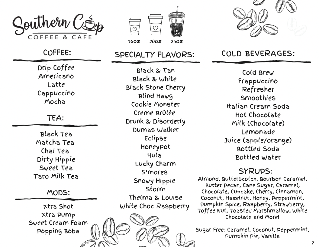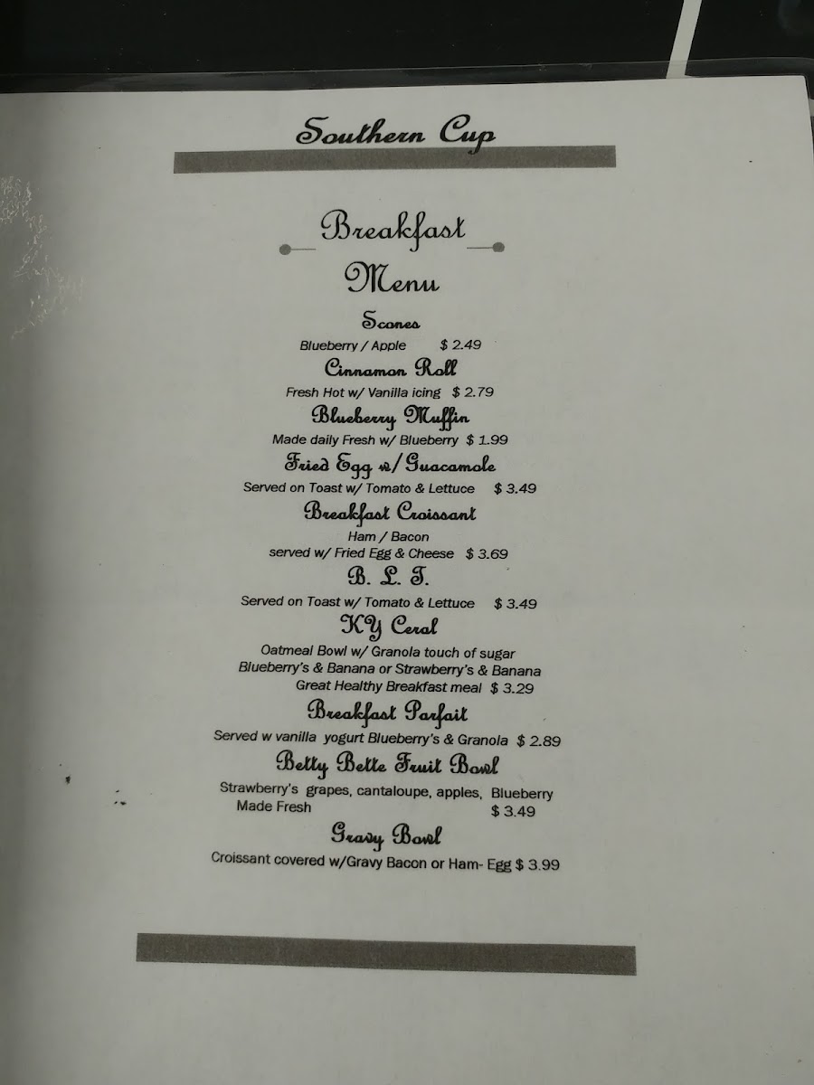 Welcome to Southern Cup Coffee & Cafe, a charming spot located at 800 W Main St, Glasgow, KY. This delightful cafe offers a menu rich in variety and comfort, perfect for all coffee lovers and food enthusiasts alike.